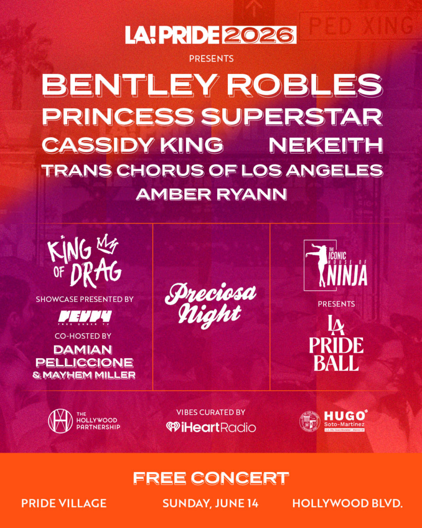 This year’s program will feature performances by Bentley Robles, Princess Superstar, Cassidy King, Nekeith, Preciosa Night, the Trans Chorus of Los Angeles, and Amber Ryann—bringing together a dynamic mix of emerging voices and established talent that reflects the diversity, creativity, and cultural impact of the LGBTQ+ community.
